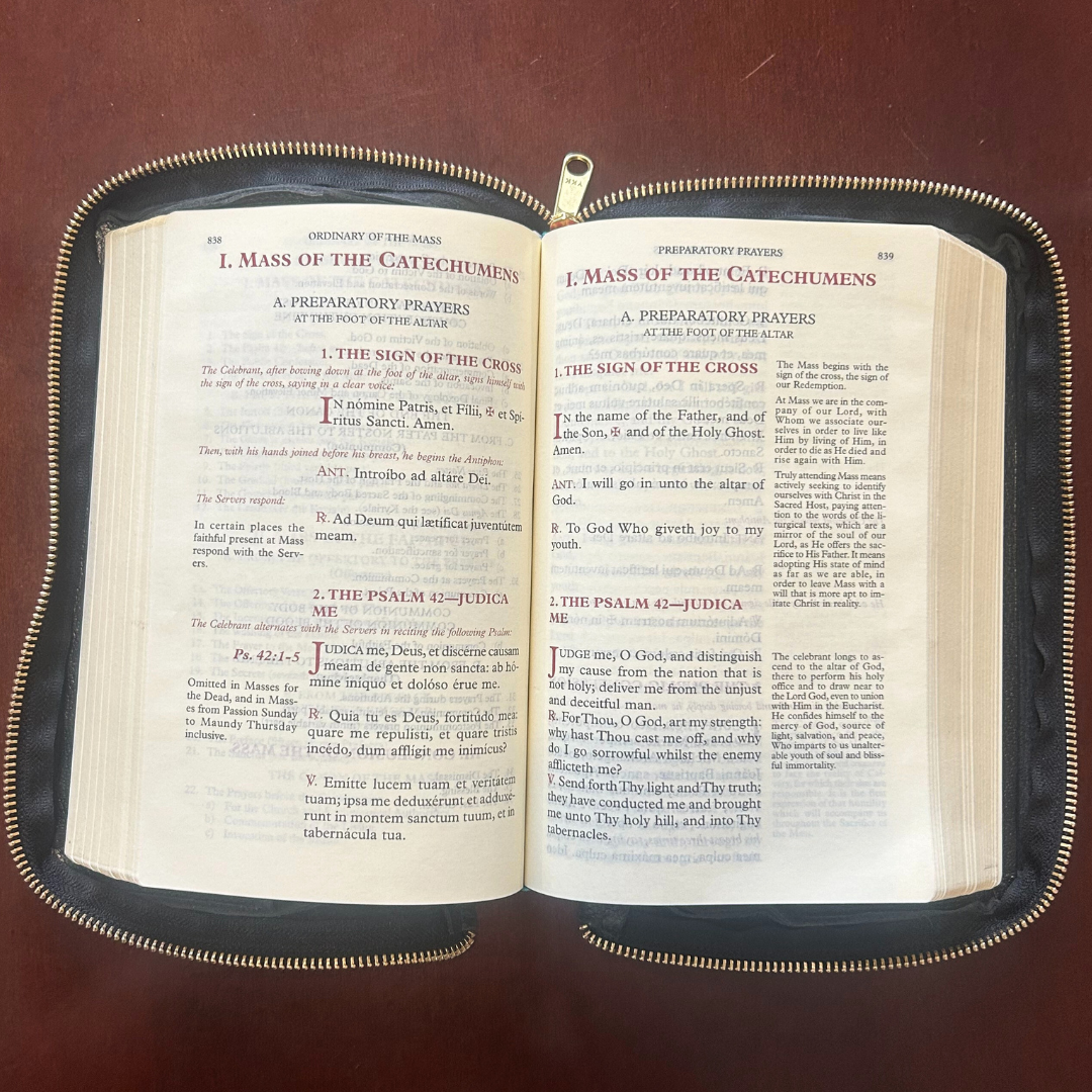 Genuine Black Leather Missal Cover. Metal zipper Fits the Angelus Press 1962 Daily Missal - Large Print
