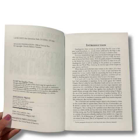 A unique edition of Pope Pius XI's encyclical Quadragesimo Anno, On the Reconstruction of the Social Order. Contains an introduction by Bishop Richard N. Williamson and four color graphs and charts by Bishop Williamson to help the reader gain a deeper understanding of the text. An invaluable study guide.